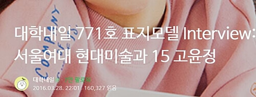 대학내일이라는 대학생 전문 잡지 표지모델을 하게 됩니다.