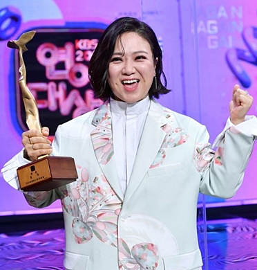 몇년 전에는 절친 개그우먼 송은이와 함께 더블V라는 이름으로 앨범을 내고 활동하기도 했습니다.