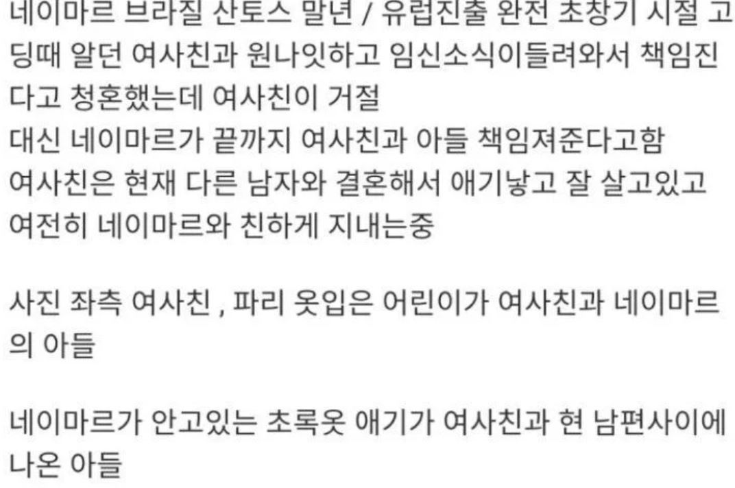 두 사람은 헤어지고 난 후 임신사실을 알게되어 네이마르가 책임을 지겠다며 청혼했지만 여자쪽에서 거절했다고 해요. 현재 캐롤리나 노게이라 탄테스는 다른 남성과 결혼하여 아이를 낳고 잘 살고 있으며 아들과 네이마르도 자주 만나며 모두 한 가족처럼 지낸다고 합니다.