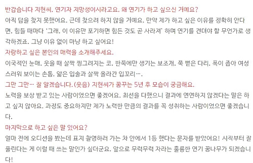 당시에도 뛰어난 미모를 자랑했으며 표지모델을 할 당시에도 배우의 꿈을 가지고 오디션을 보고 있음을 밝혔습니다.