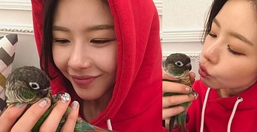 현재는 한마리가 무지개다리를 건너 총 네 마리의 새를 키우고 있습니다. 반려 새와의 화보사진 촬영 경험도 있으며 예능에 출연해 새와 사는 집을 공개하기도 했습니다. 당시 공개했던 집은 하남의 뷰가 좋은 고급 아파트입니다. 예능에서는 춤추는 새로 눈길을 끌었습니다.