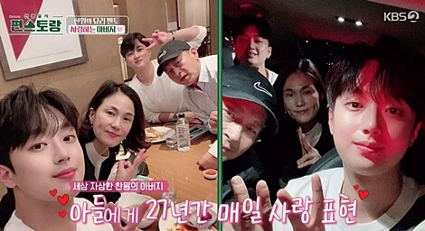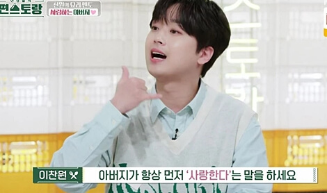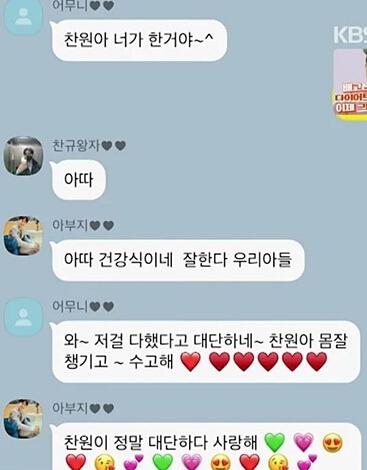 이찬원의 가족 단체 톡방도 공개되었습니다. 요리를 즐겨하는 이찬원은 아버지로부터 요리실력을 물려받았다고 전해집니다. 요리를 잘하기 때문에 또장금, 또리사 등으로 불리기도 합니다.