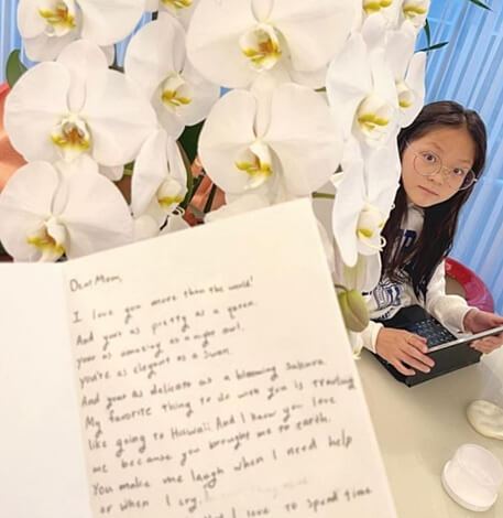 야노시호와 추사랑은 하와이에 주로 머물며 사랑이는 하와이 소재의 상위권 사립 학교에 다니는 중이라는 데요. 영어가 매우 능숙해졌다고 합니다. 엄마에게 어버이날 편지를 영어로 작성했다고 하네요.